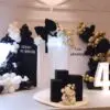 Whether you’re planning a 40th birthday, 30th birthday, or a sweet 16, this package delivers that “WOW” moment for your guests and photos. Our premium design includes a custom name cut-out, floor-level balloon clusters, white ribbed panels, and optional add-ons like florals or light-up numbers.